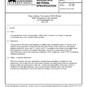 This specification covers a fluorocarbon (FKM) rubber in the form of O-rings, O-ring cord, compression seals, and molded-in-place gaskets.