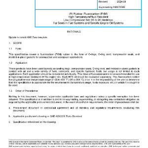 This specification covers a fluorocarbon (FKM) rubber in the form of O-rings, O-ring cord, compression seals, and molded-in-place gaskets for aeronautical and aerospace applications.