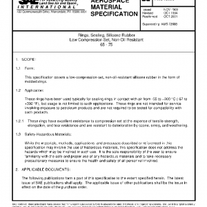 This specification covers a low-compression-set, non-oil-resistant silicone rubber in the form of molded rings.
