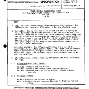 This specification covers a high-temperature fluid resistant, low compression set fluorocarbon (FKM) rubber in the form of molded rings.