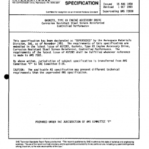 Gaskets, Type Xx Engine Accessory Drive Corrosion Resistant Steelscreen Reinforced Controlled Perfor (Cancelled Oct 1993)