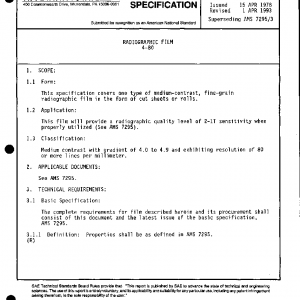 This specification covers one type of medium-contrast, fine-grain radiographic film in the form of cut sheets or rolls.
