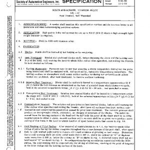BOLTS AND SCREWS, TITANIUM ALLOY 6Al – 4V Heat Treated, Roll Threaded