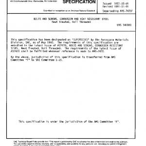 BOLTS AND SCREWS, CORROSION AND HEAT RESISTANT STEEL Heat Treated, Roll Threaded