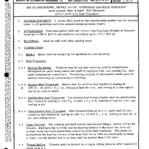 BOLTS AND SCREWS, NICKEL ALLOY, CORROSION AND HEAT RESISTANT Upset Headed, Heat Treated, Roll Threaded 1975 F (1079.4 C) Heat Treatment