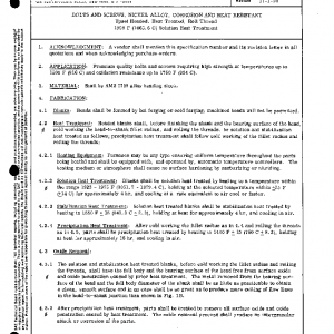 BOLTS AND SCREWS, NICKEL ALLOY, CORROSION AND HEAT RESISTANT Upset Headed, Heat Treated, Roll Thread 1950 F (1065.6 C) Solution Heat Treatment