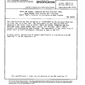 BOLTS AND SCREWS, CORROSION AND HEAT RESISTANT STEEL Upset Headed, Heat Treated, Roll Threaded 1800°F (982°C) Solution and Precipitation Heat Treated