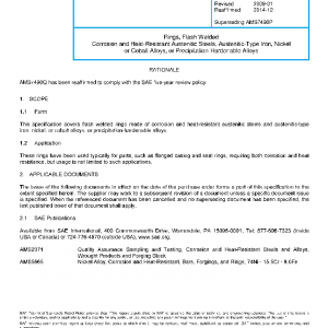 This specification covers flash welded rings made of corrosion and heat-resistant austenitic steels and austenitic-type iron, nickel, or cobalt alloys, or precipitation-hardenable alloys.