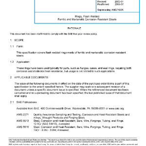 This specification covers flash welded rings made of ferritic and martensitic corrosion-resistant steels.