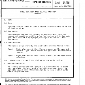This specification covers two types of magnetic nickel-iron alloy in the form of sheet and strip.