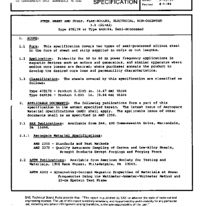 STEEL SHEET AND STRIP, FLAT-ROLLED, ELECTRICAL, NON-ORIENTED 3.0 (Si+Al) Type 47S178 or Type 64S194, Semi-Processed