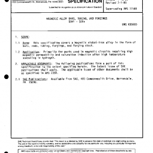 This specification covers a magnetic nickel-iron alloy in the form of bars, rods, tubing, forgings, and forging stock.