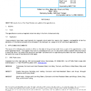 This specification covers a magnetic nickel-iron alloy in the form of sheet and strip.