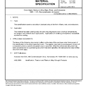 This specification covers a columbium (niobium) alloy in the form of bars, rods, and extrusions.