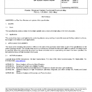 This specification covers a blend of chromium carbide and a nickel-chromium alloy in the form of powder.