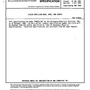 This specification has been “CANCELLED” by the Aerospace Materials Division, SAE, as of October, 1992.