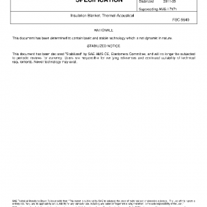 This specification covers the requirements of composite blankets suitable for acoustical and thermal insulation of the walls of aircraft compartments within the temperature range of -65°F to +175°F (-54°C to +80°C).