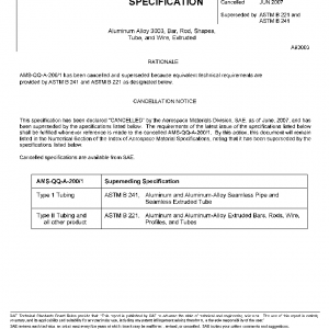 Aluminum Alloy 3003, Bar, Rod, Shapes, Tube, and Wire, Extruded(Cancelled Jun 2007)