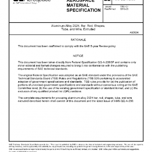 This specification covers the specific requirements for aluminum alloy 2024 bar, rod, shapes, tube, and wire produced by extrusion.