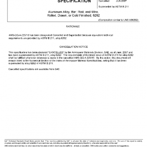 This specification covers the specific requirements for 6262 aluminum alloy bar, rod, and wire produced by rolling, drawing or cold finishing.