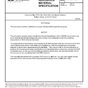 This specification covers the specific requirements for 7075 aluminum alloy bar, rod, wire, and special shapes produced by rolling, drawing, or cold finishing.