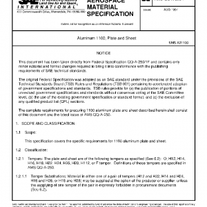 This specification covers the specific requirements for 1100 aluminum plate and sheet.