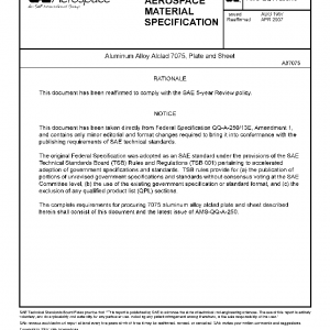 This specification covers the specific requirements for 7075 aluminum alloy alclad plate and sheet; the general requirements are covered in AMS-QQ-A-250. The plate and sheet covered by this specification shall be an integral composite product consisting of a heat-treatable aluminum alloy (7075) core with thin layers of an aluminum alloy (7072) anodic to the core and of approximately equal thickness bonded to both surfaces.