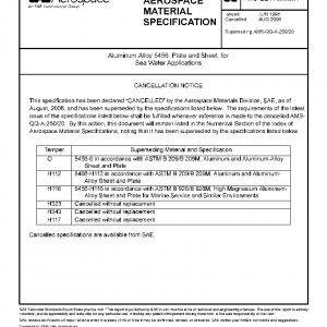 Aluminum Alloy 5456, Plate and Sheet, for Sea Water Applications(Cancelled Aug 2006)