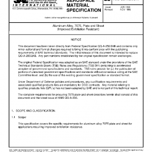 This specification covers the specific requirements for aluminum alloy 7075 plate and sheet for applications requiring improved exfoliation resistance.