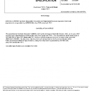 Aluminum 7075, Plate and Sheet, Alclad 7011(Cancelled Jun 2007)