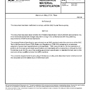 This specification covers the specific requirements for 2124 aluminum alloy plate for intended use in the -T851 temper; the general requirements are covered in AMS-QQ-A-250.