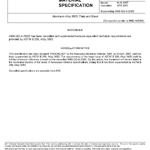 Aluminum Alloy 3003, Plate and Sheet(Cancelled Apr 2007)