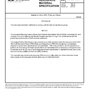 This specification covers the specific requirements for 2024 aluminum alloy plate and sheet; the general requirements are covered in AMS-QQ-A-250.