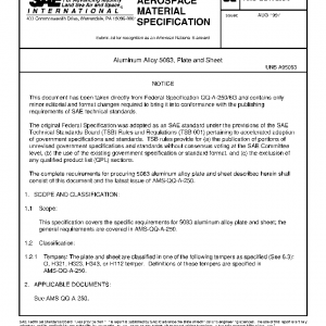 This specification covers the specific requirements for 5083 aluminum alloy plate and sheet; the general requirements are covered in AMS-QQ-A-250.