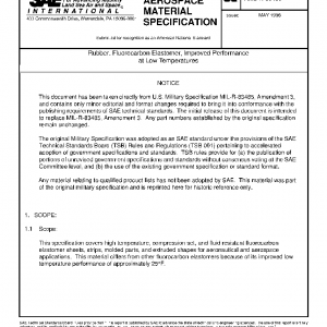 This specification covers high temperature, compression set, and fluid resistant fluorocarbon elastomer sheets, strips, molded parts, and extruded shapes for aeronautical and aerospace applications. This material differs from other fluorocarbon elastomers because of its improved low temperature performance of approximately 25°F.