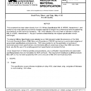 This specification covers chrome-molybdenum alloy 4130, steel sheet, strip, and plate of thickness to and including 1.50 inches.