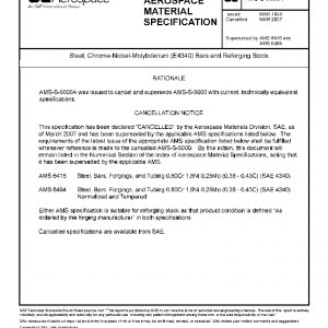 Steel, Chrome-Nickel-Molybdenum (E4340) Bars and Reforging Stock(Cancelled Mar 2007)