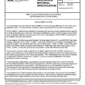 Steel, Chrome-Nickel-Molybdenum (8740) Bars and Reforging Stock (Aircraft Quality)(NONCURRENT Sep 2002)