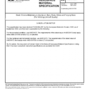 Steel, Chrome-Molybdenum-Aluminum; Bars, Rods, Billets and Forging Stock (For Nitriding) (Aircraft Quality)(Cancelled Sep 2002)