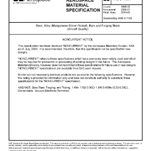 Steel, Alloy (Manganese-Silicon-Nickel), Bars and Forging Stock (Aircraft Quality)(NONCURRENT Jul 2006)