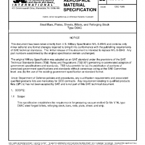 This specification establishes the requirements for procuring vacuum melted Cr-Mo-V-Ni, type D6AC steel forged billets, reforging stock, bars, rods, plate, sheet, and strip.