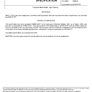 Tungsten Base Metal, High Density(Cancelled Mar 2008)