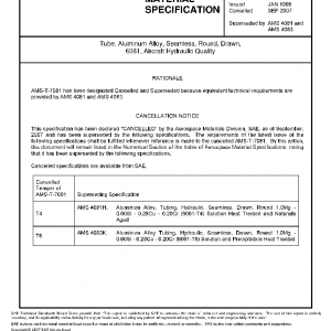 Tube, Aluminum Alloy, Seamless, Round, Drawn, 6061, Aircraft Hydraulic Quality(Cancelled Sep 2007)