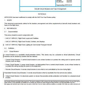 This document recommends criteria for the location, arrangement and other requirements of aircraft circuit breakers and fuses on the flight deck.