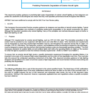 This Aerospace Recommended Practice provides guidance for designers and specifiers of aircraft exterior lighting. Typical causes of light degradation and methods of predicting performance degradation in the aircraft environment are given. Although the document considers only exterior lighting, many of the principles and methods discussed apply to interior or flight deck lighting as well.