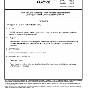 This SAE Aerospace Recommended Practice (ARP) covers all types of ground support equipment required to support civil transport aircraft.