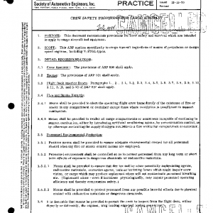 This document recommends provisions for crew safety and survival which are intended to apply to cargo aircraft and equipment. This ARP applies specifically to cargo aircraft regardless of means of propulsion or design speed regimes, including V/STOL types.