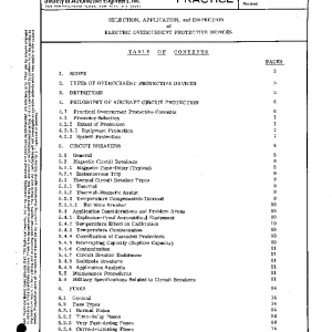 This Aerospace Recommended Practice provides technical and application information needed by the designers of aircraft electric systems and support equipment for the selection of overcurrent protective devices. It provides definitions to permit comparisons of various electric circuit protective devices. Included also are recommended procedures for periodic inspection.