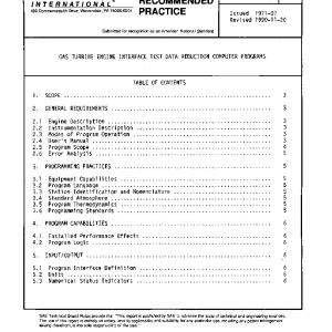 This Aerospace Recommended Practice (ARP) describes a class of digital computer programs for use by organizations other than the engine supplier for reduction of engine test data relating to the interface of the engine in the airframe or test facility. This ARP also is intended as a guide for the preparation of such computer programs.