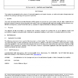 This SAE Aerospace Recommended Practice (ARP) applies to survival kits to be carried with life rafts or slide/rafts on transport category airplanes flying extended over-water routes and equipped with approved satellite alerting devices (e.g., 406 MHz Emergency Locator Transmitter (ELT)), available for deployment after an emergency landing.